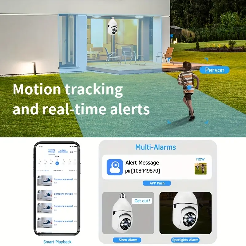 3pcs Smart HD WiFi Bulb Surveillance Camera, 360° Panoramic Monitoring, 1440P HD, with Motion Detection Alerts, Full-Color Day/Night Vision, Remote Two-Way Talk Via Smartphone, Protects Your Home/Yard/Shop Monitoring.Each surveillance camera comes with a 32GB high-speed TF memory card.